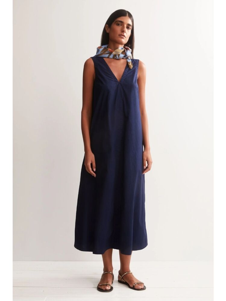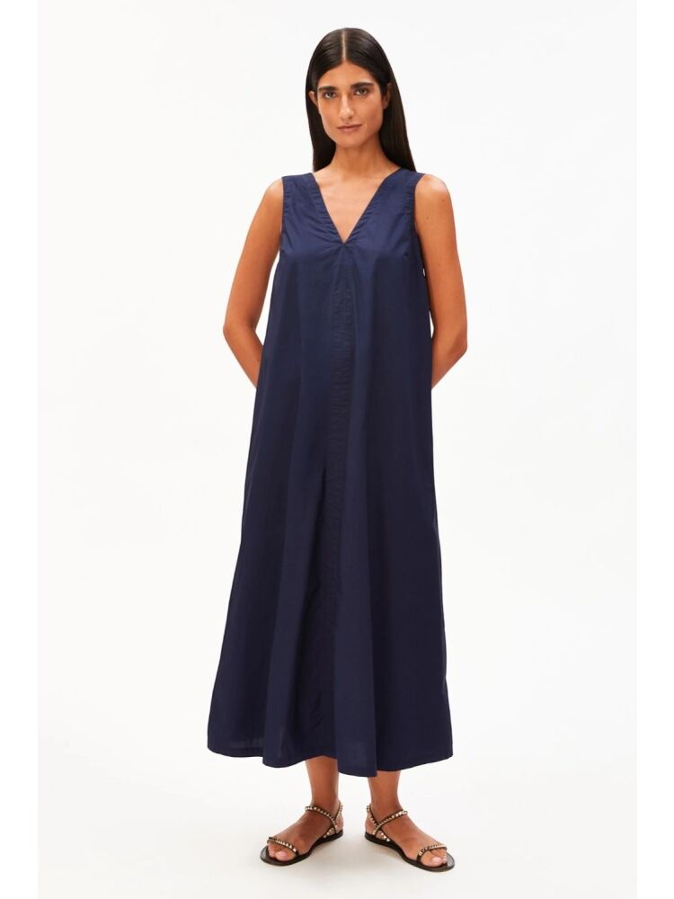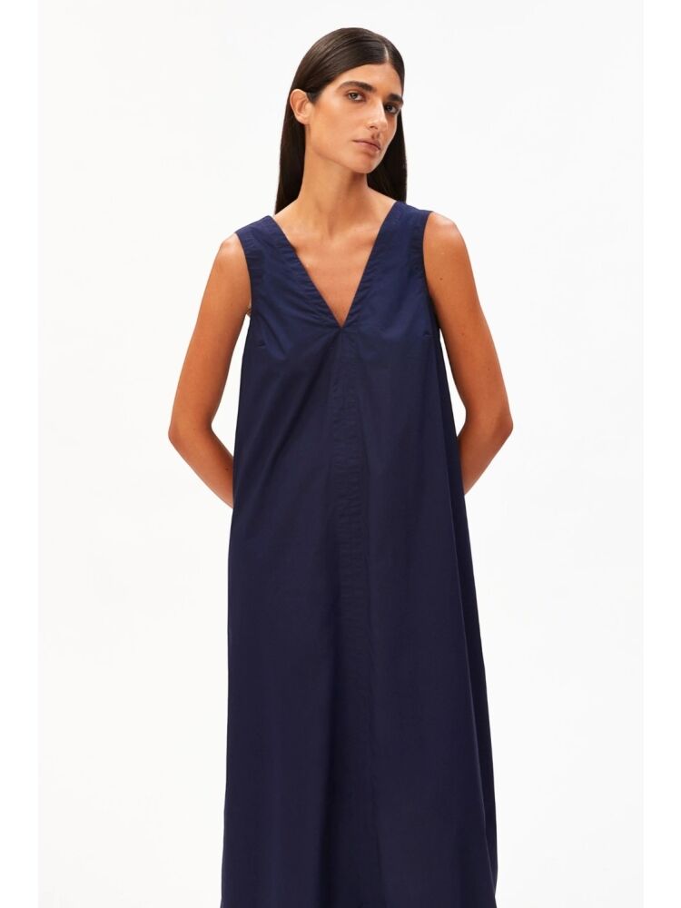 Armedangels poplin maxi v-neck dress / 3232 TINTED NAVY