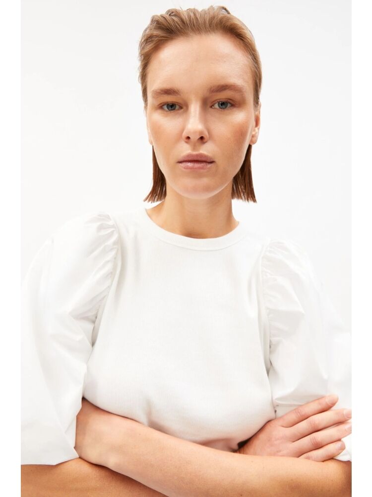 Armedangels puff sleeve t-shirt / 188 WHITE