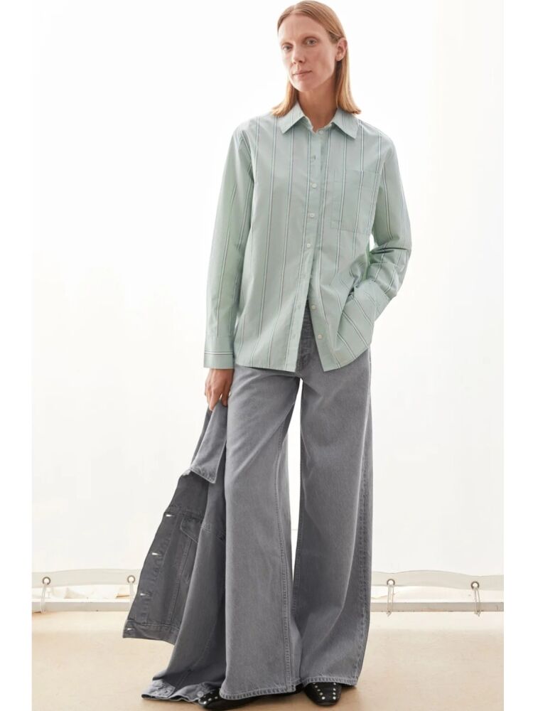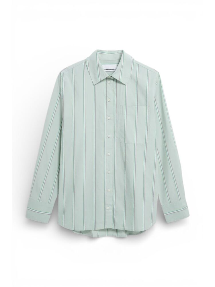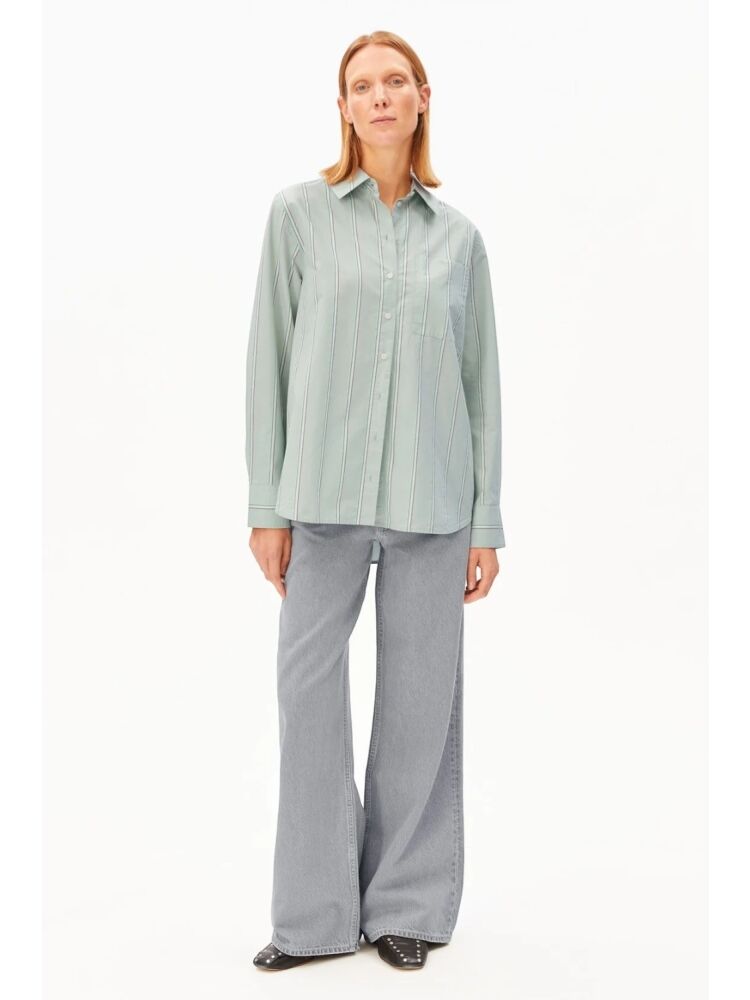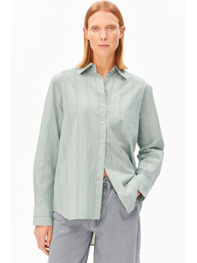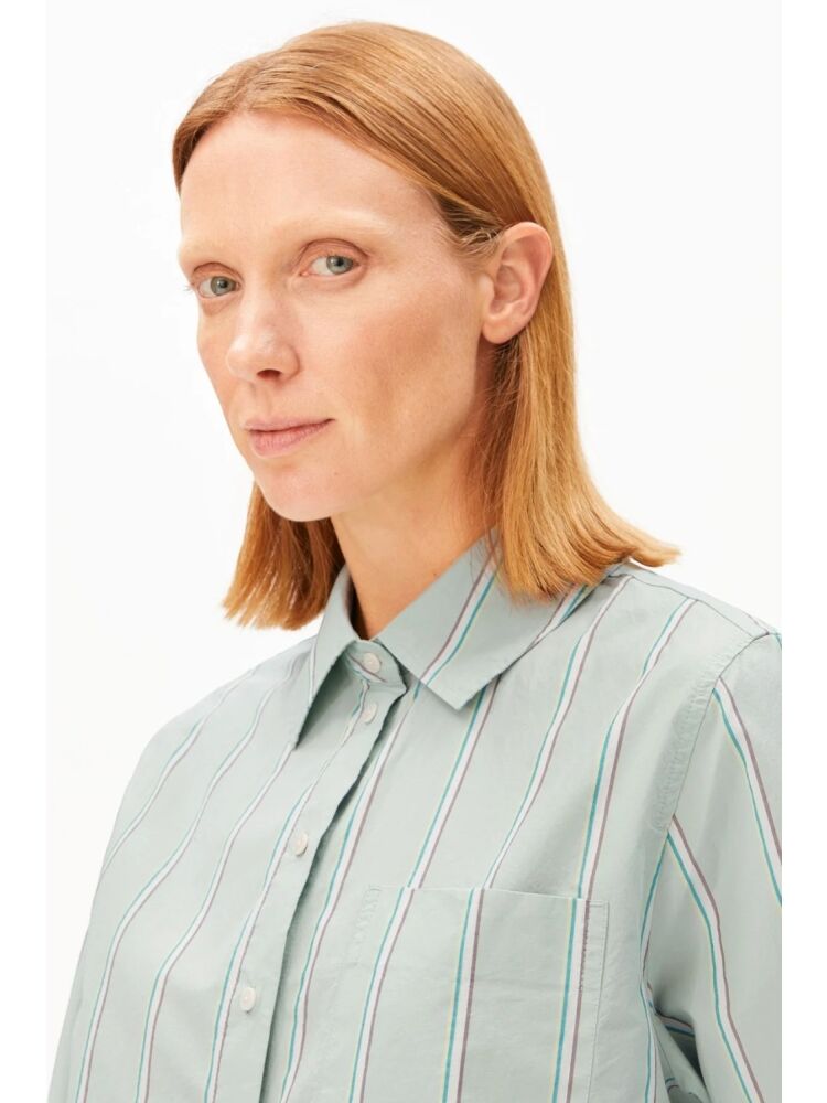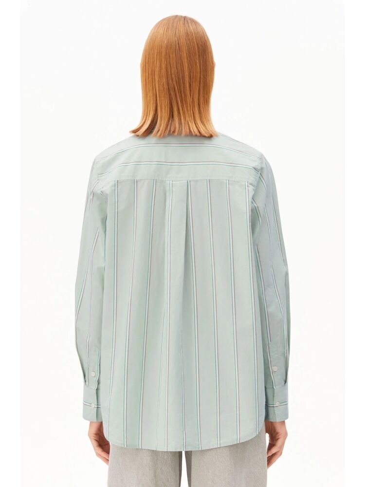 Armedangels stripe loose shirt blouse / 3582 FOAM - POOL GREEN