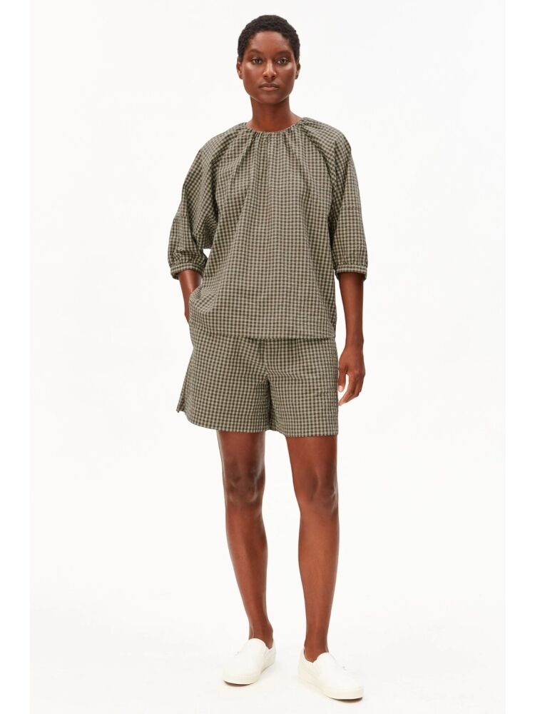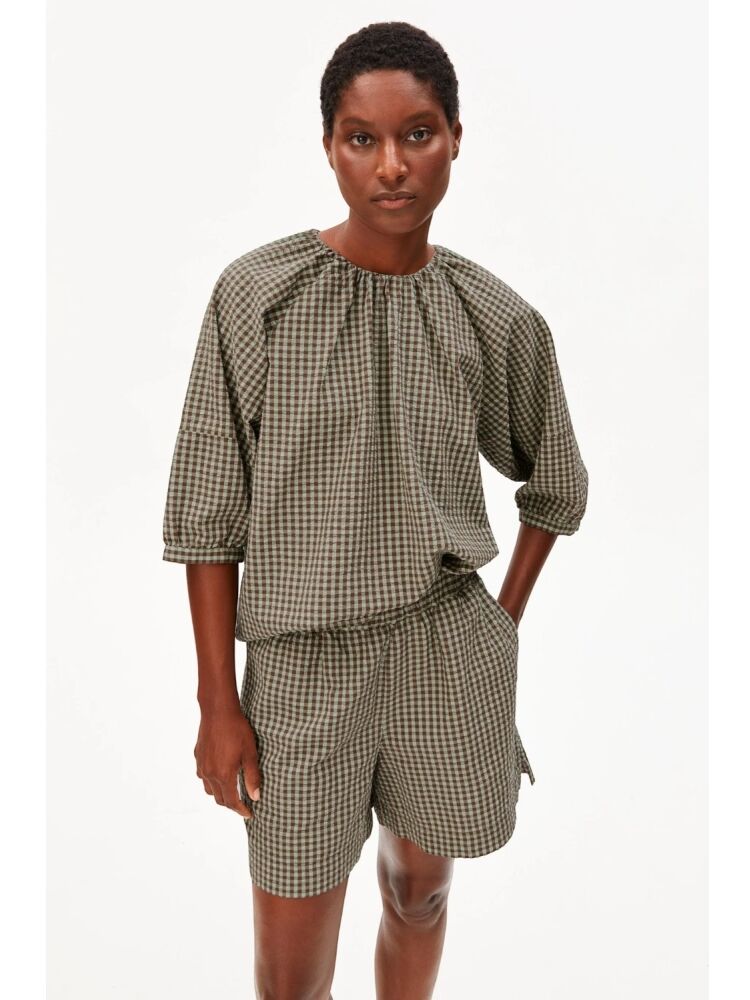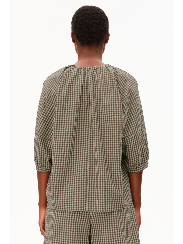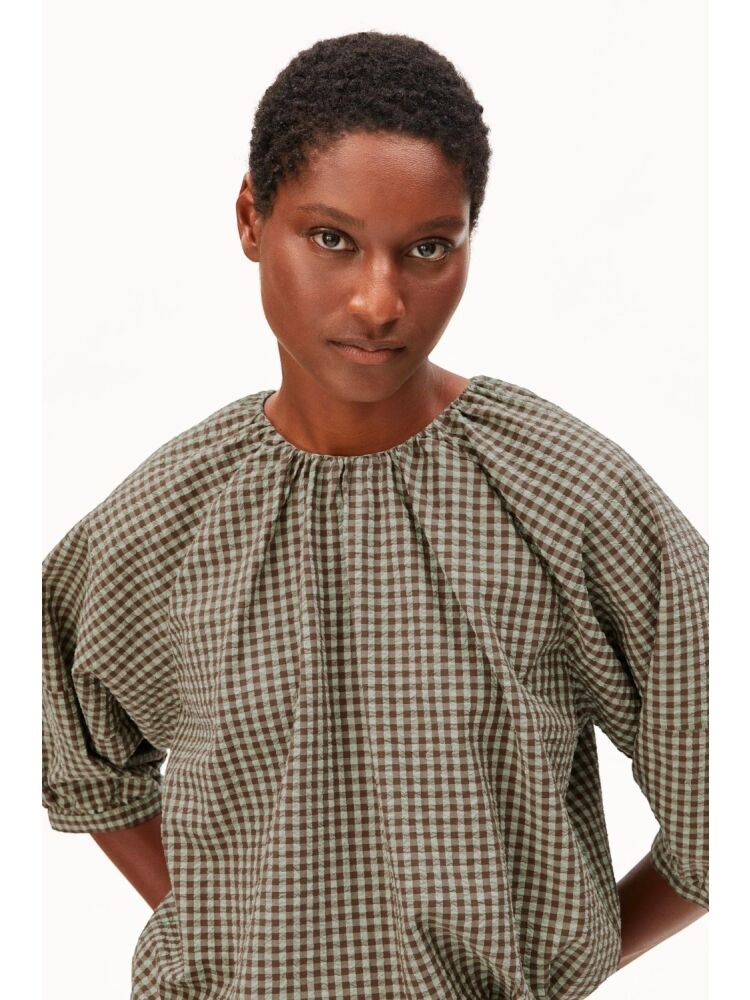 Armedangels vichy seersucker blouse / 3657 FOAM-DRIED PLUM