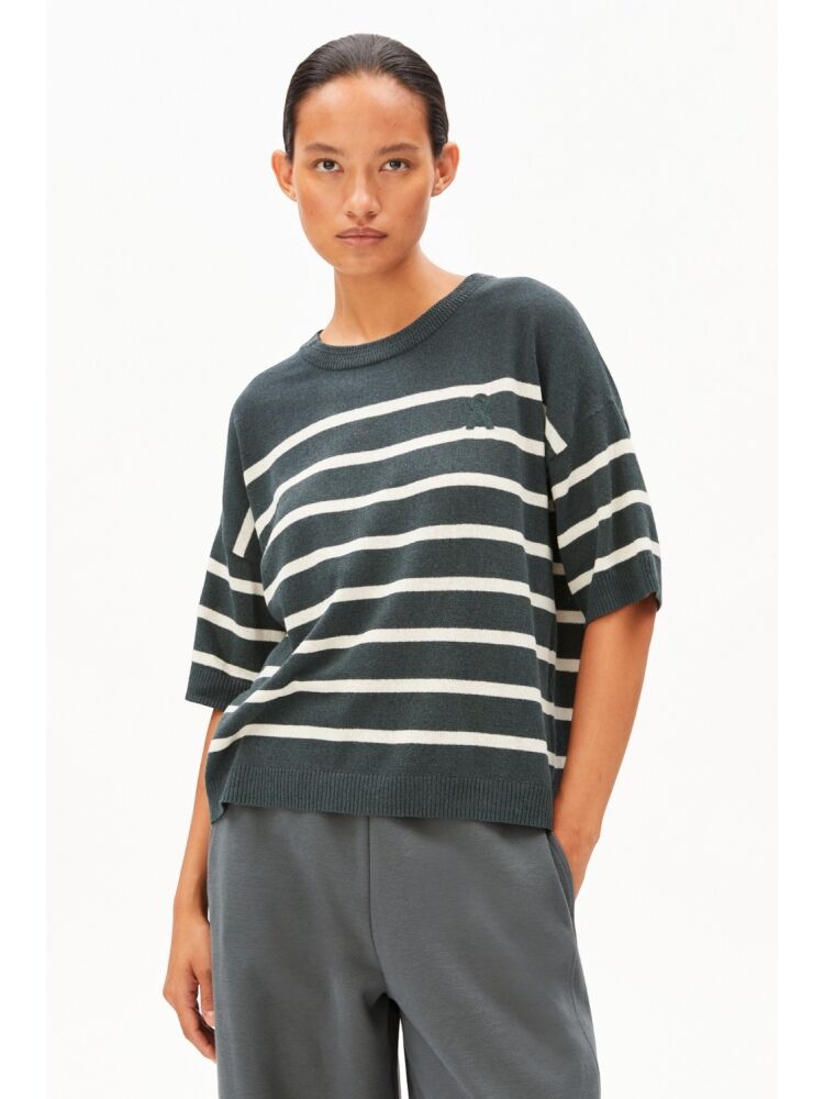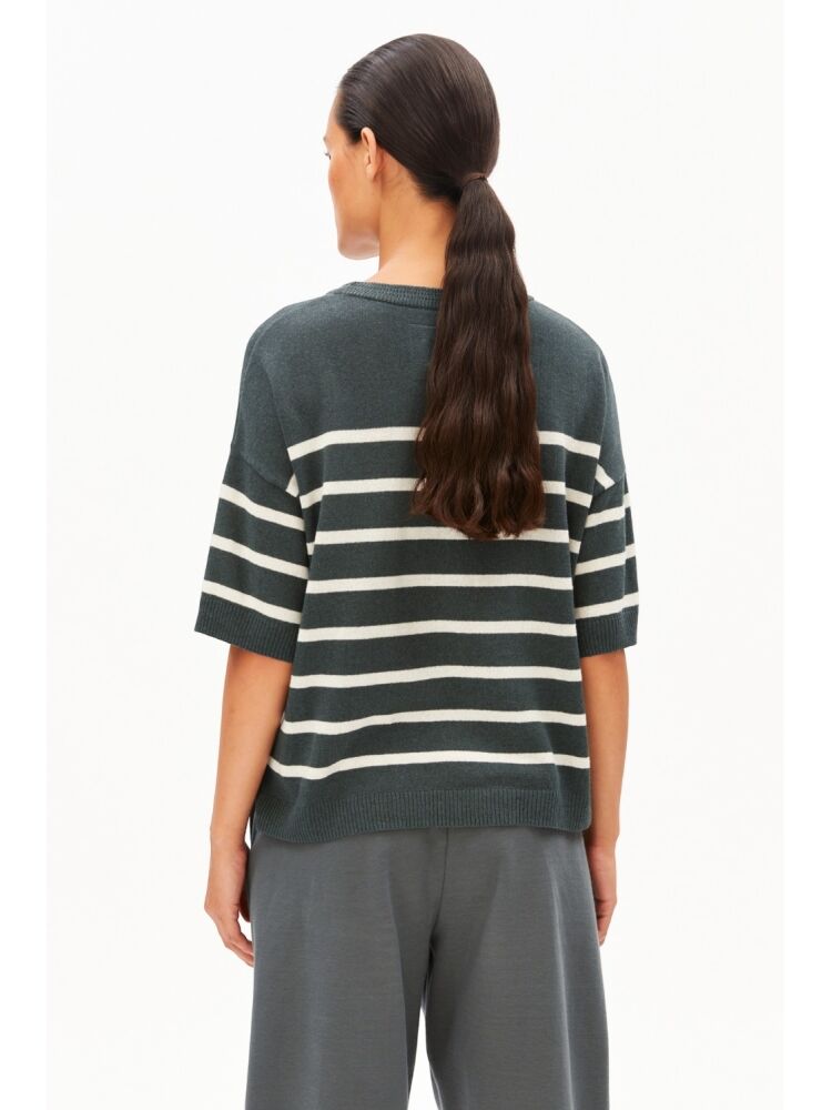 Armedangels striped linen blend sweater / 2682 SPACE STEEL - UNDYED