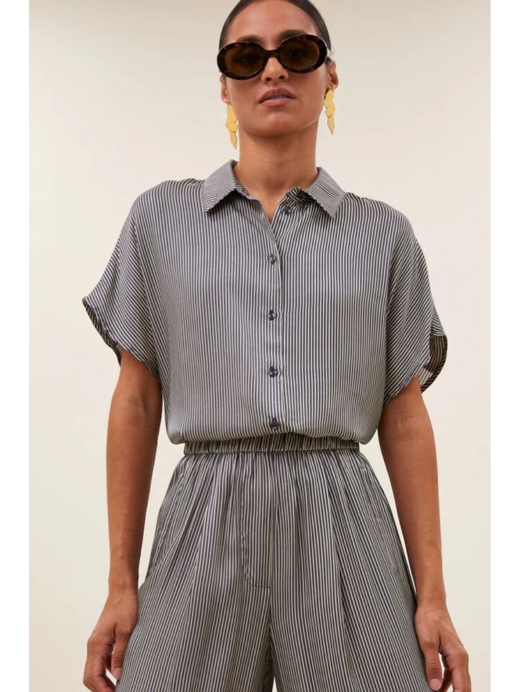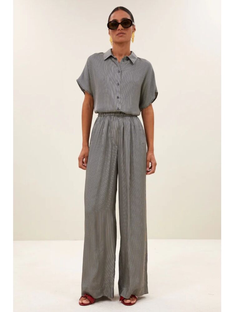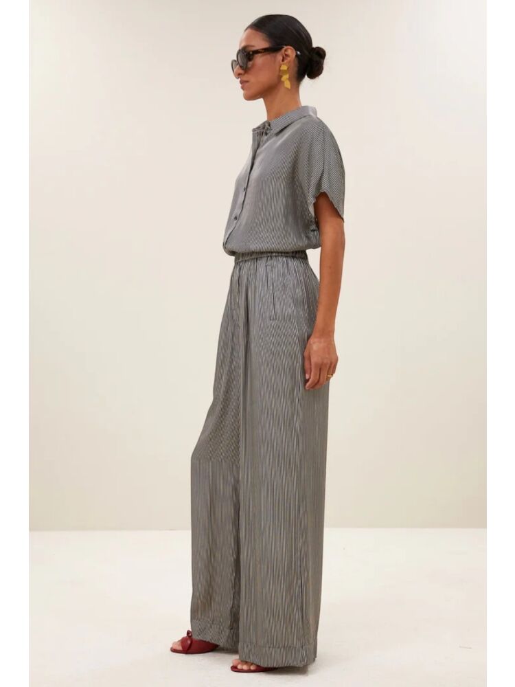 By bar benji silky stripe pants / 886 JET BLACK STRIPE