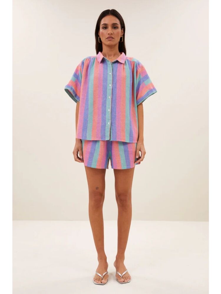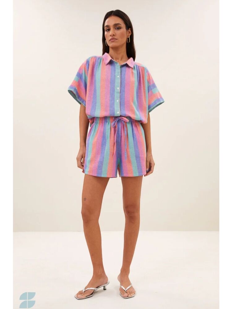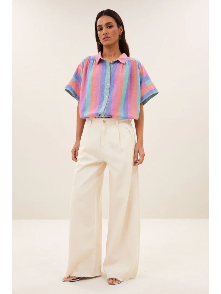 By bar sunny rainbow pleats blouse / 910 RAINBOW STRIPE