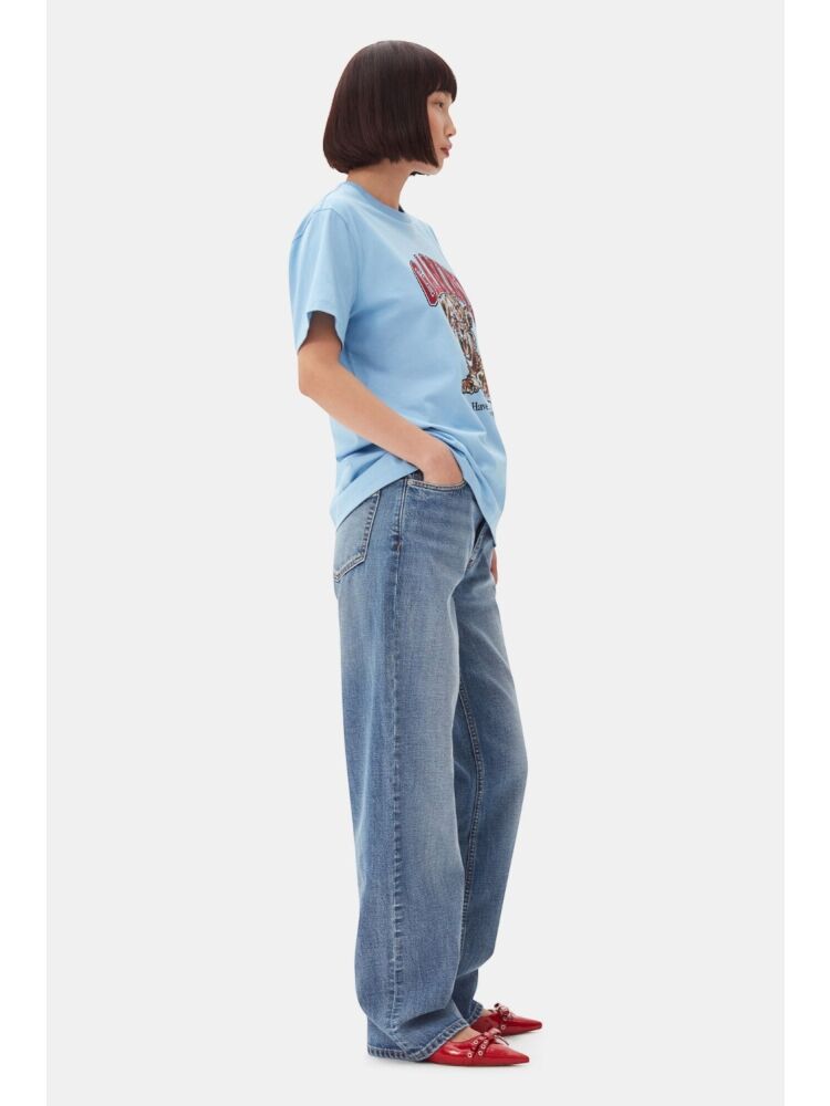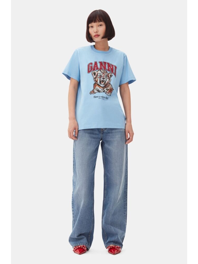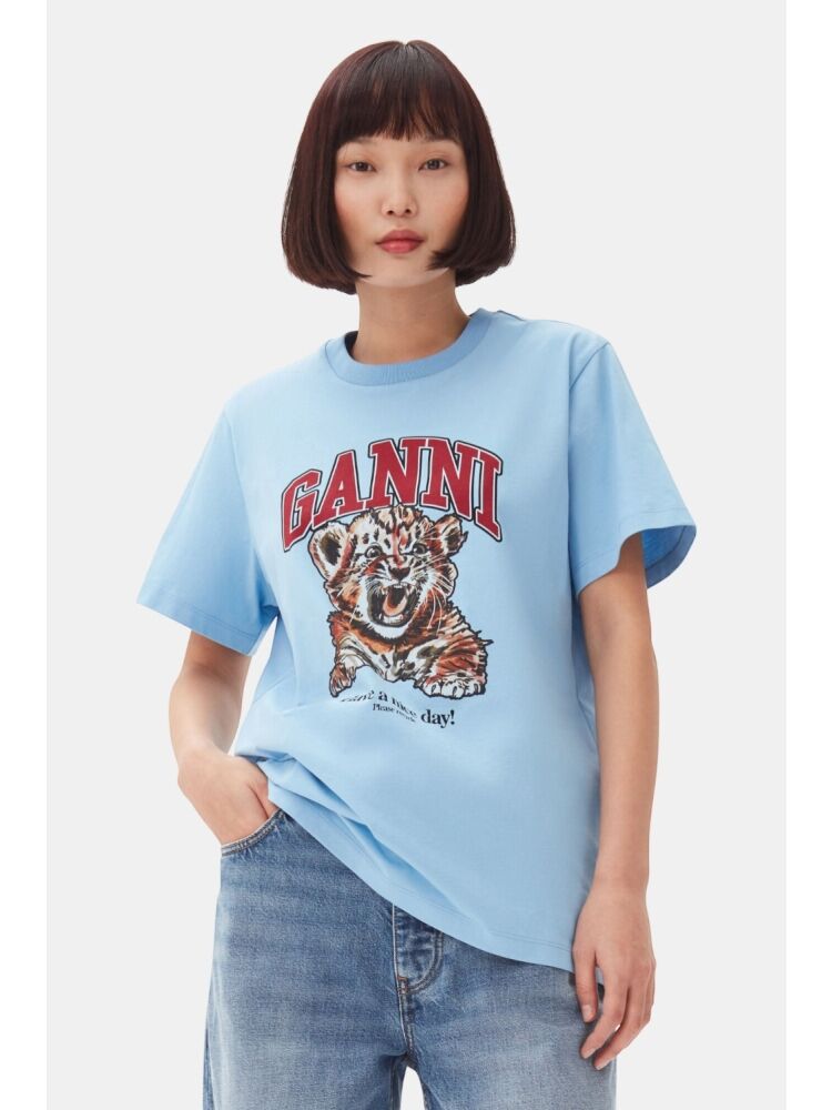 Ganni t4007 bsc jsy tiger rlxd t-sht / 745 BLISSFUL BLUE